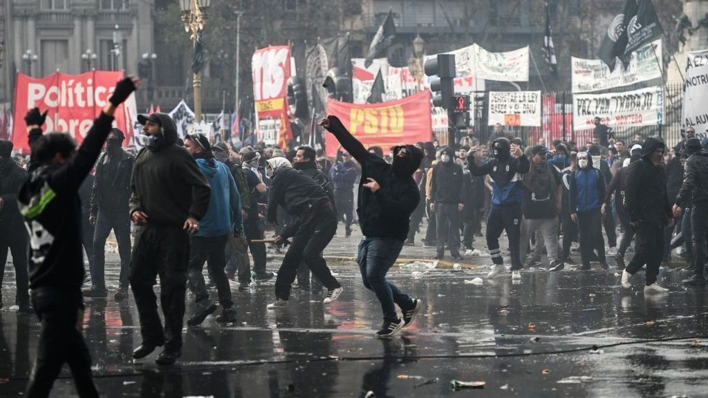 O governo da Argentina, por meio de uma publicação no X, afirmou que “terroristas” planejaram um golpe de Estado durante protestos em frente ao Congresso nesta quarta-feira (12). Manifestantes entraram em confronto com a polícia.