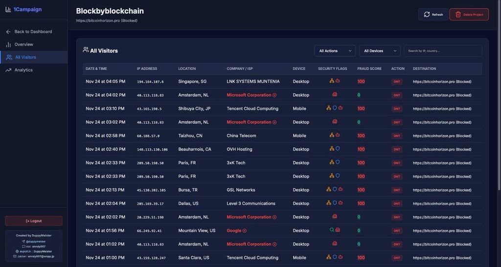 A Varonis identificou que o 1Campaign oferece algumas ferramentas para os criminosos que vão além da simples camuflagem em anúncios. Entre os serviços comercializados estão análises em tempo real, criação de perfis de visitantes, avaliação de fraudes e bloqueio de tráfego de fornecedores.