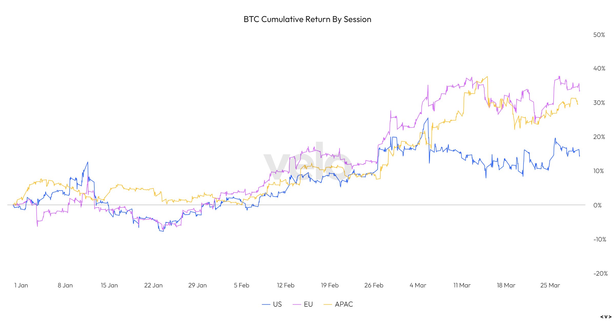 Horário de negociação europeu lidera aumento global do Bitcoin no primeiro trimestre de 2024