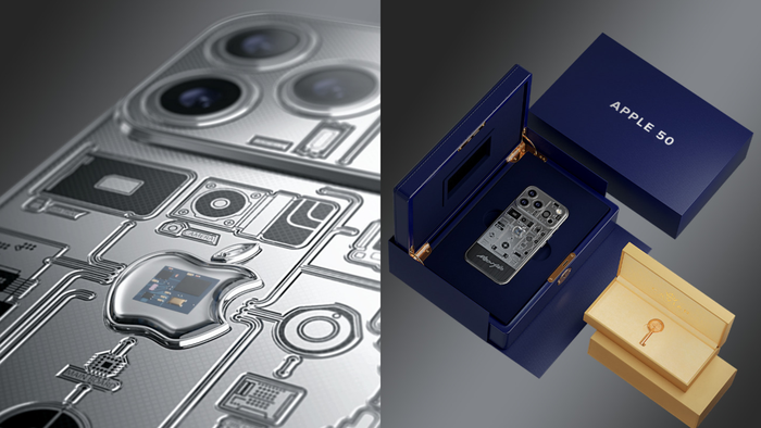 O logotipo da Apple também ganhou um toque especial: ele é transparente e abriga um pequeno pedaço da placa original do iPhone de 2007, tornando cada unidade literalmente única.