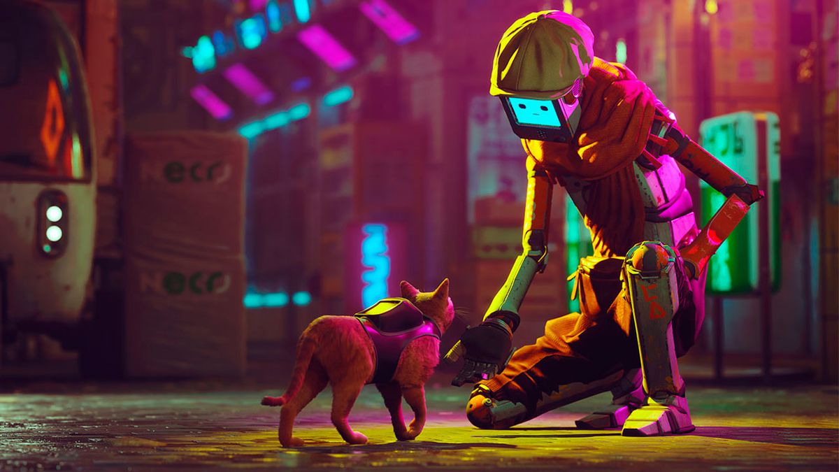 Em Stray os jogadores controlam um gato de rua que foi separado do seu grupo e agora deve passar por obstáculos numa cidade cyberpunk povoada de robôs, tal como na série Love, Death and Robots.