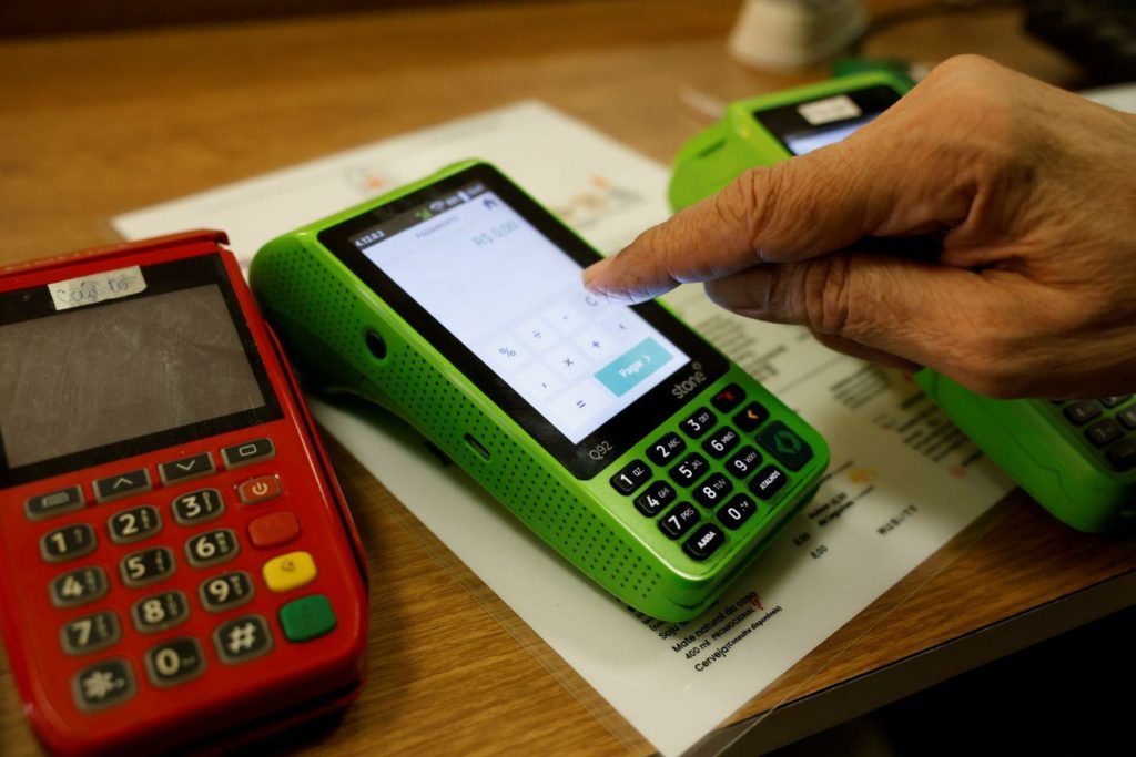 Senhora faz contas em maquininha de cartão | Crédito: Fernando Frazão/Agência Brasil