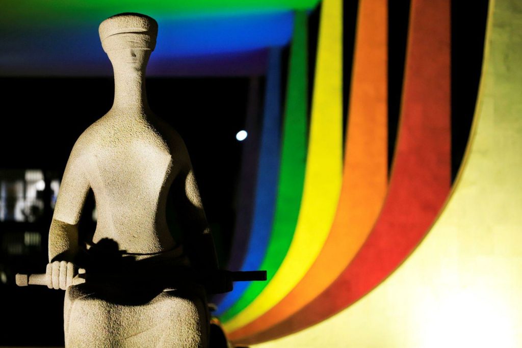 O Supremo Tribunal Federal iluminado com as coras da bandeira LGBTQIA+ / Crédito: Fellipe Sampaio/STF – 29.jun.2023