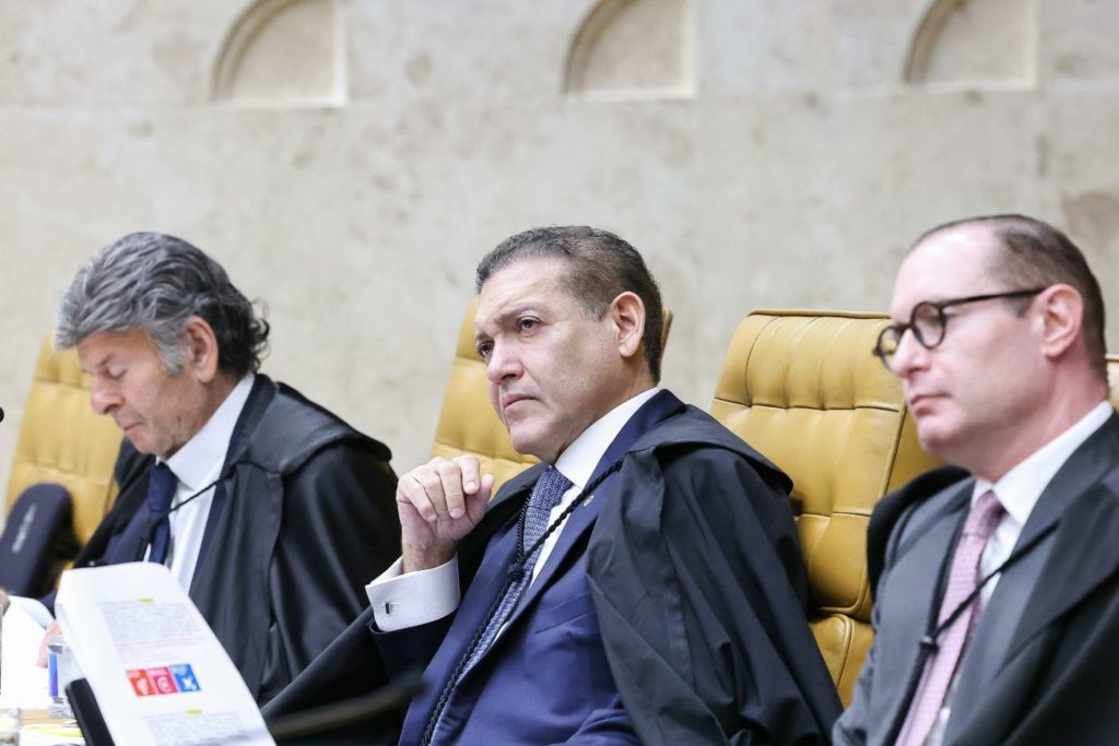 O ministro Nunes Marques, ao centro, durante julgamento nesta quinta (23) / Crédito: Antonio Augusto/STF