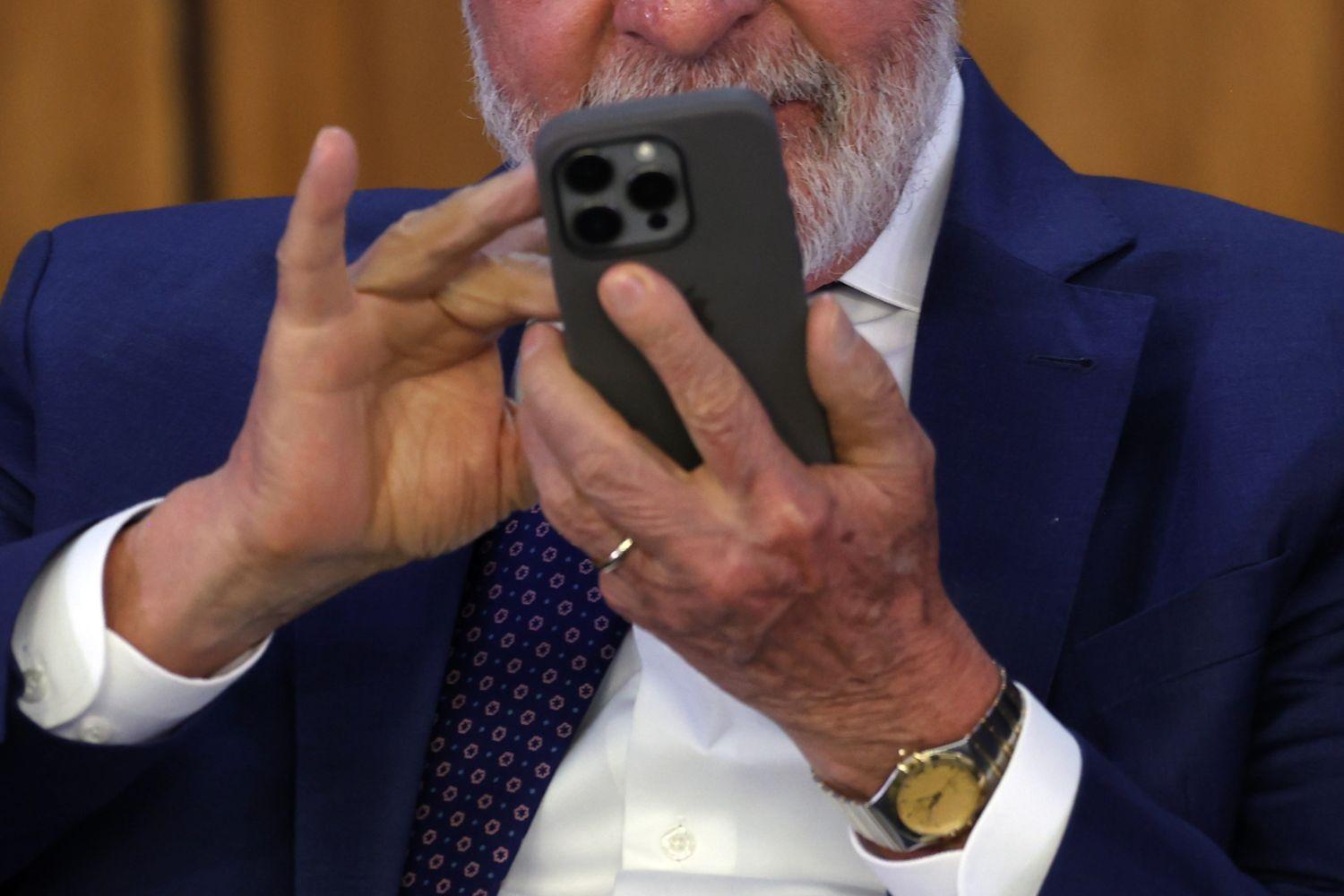 Lula mexe no celular durante evento / Crédito: José Cruz/Agência Brasil