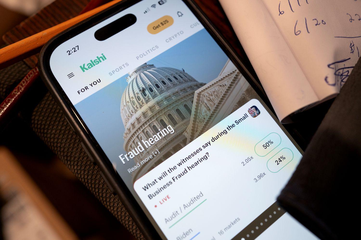 Celular com aplicativo da Kalshi / Crédito: Scott Olson/Getty Images