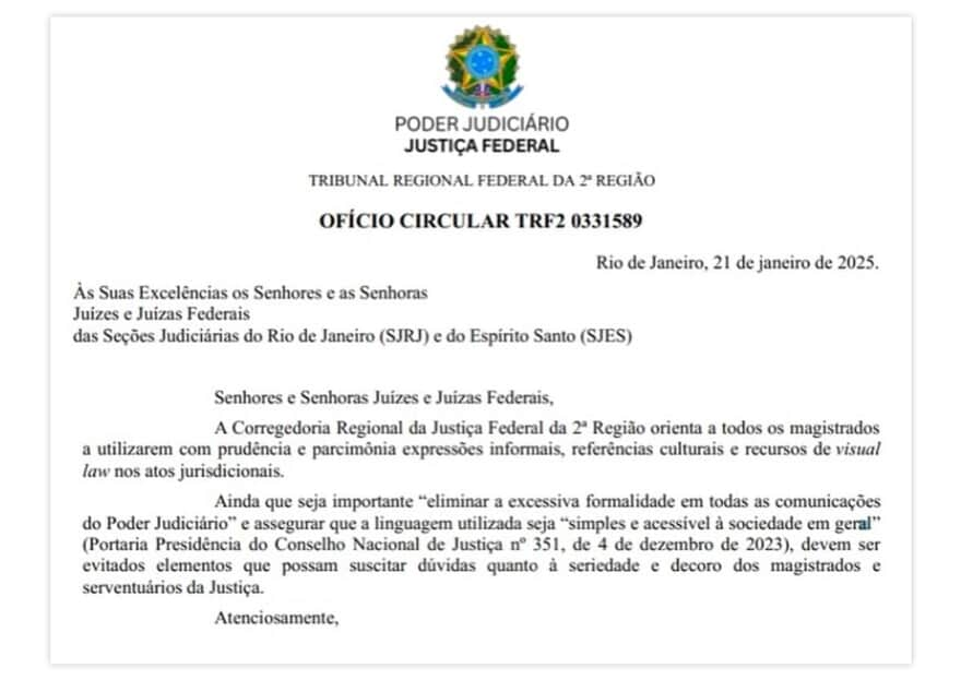 O episódio levou a Corregedoria do TRF da 2ª Região a emitir um ofício orientando os magistrados sobre o uso cauteloso de expressões informais, referências culturais e ferramentas de visual law. Embora o documento não cite diretamente o uso do meme, alerta sobre a importância de equilibrar clareza e acessibilidade com seriedade e decoro nos atos jurisdicionais.