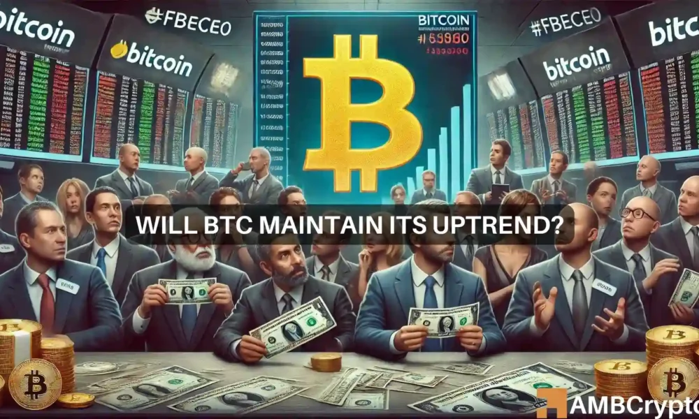 Então, demos uma olhada no gráfico diário do BTC para ver se os indicadores sugerem um rali de alta contínuo. O indicador técnico Chaikin Money Flow (CMF) registrou uma alta, sugerindo um aumento contínuo de preço.