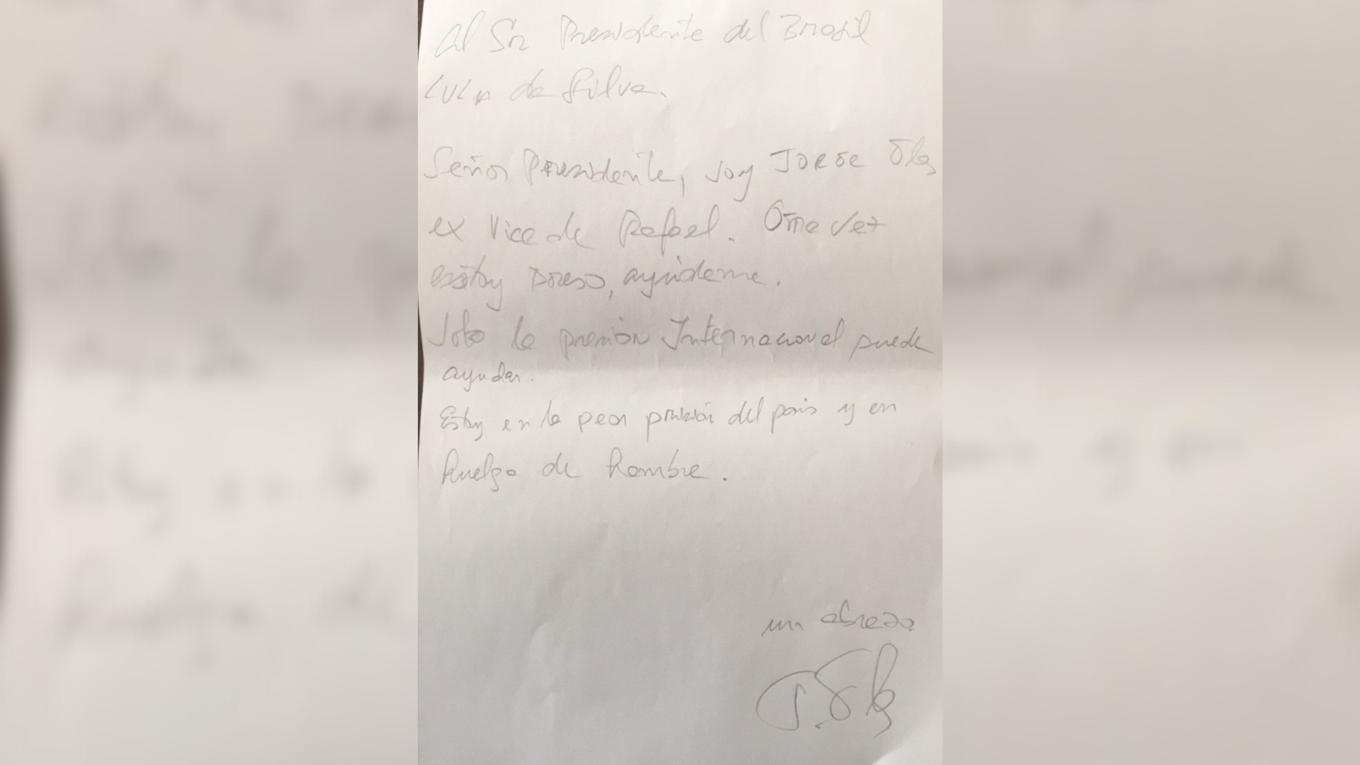 O presidente Luiz Inácio Lula da Silva (PT) recebeu uma carta escrita à mão com um pedido de ajuda de Jorge Glas, ex-vice-presidente do Equador que está em uma penitenciária de segurança máxima em Guayaquil.