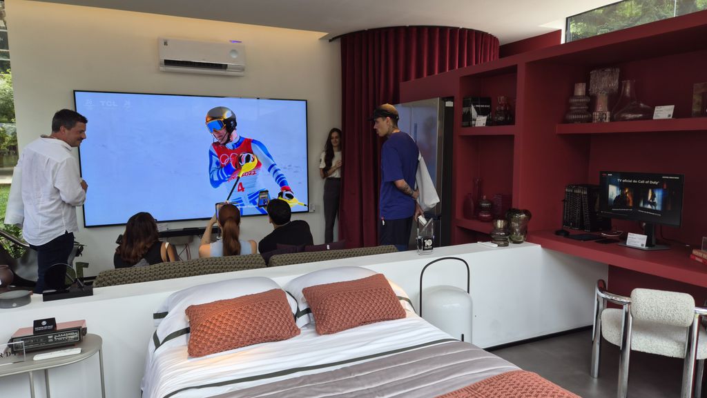 Instalada como uma espécie de residência conceito, a Casa TCL apresenta diferentes cenários (como sala de estar e áreas de convivência) pensados para demonstrar o uso de TVs e eletrodomésticos em projetos arquitetônicos contemporâneos.