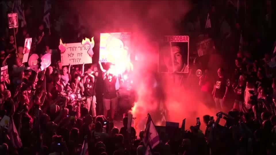 No sábado (17), manifestantes em Tel Aviv atearam fogo durante um protesto antigoverno para alertar sobre a escalada regional da guerra, caso não seja possível conseguir um acordo nas negociações de cessar-fogo e liberação de referências.