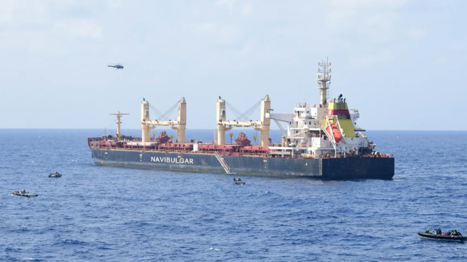 Navios de guerra espanhóis, indianos e indianos rastrearam o graneleiro de bandeira maltesa e administrado pela Bulgária quando este foi levado para águas territoriais japonesas da Somália, de acordo com um relatório de dezembro da Força Naval da União Europeia.