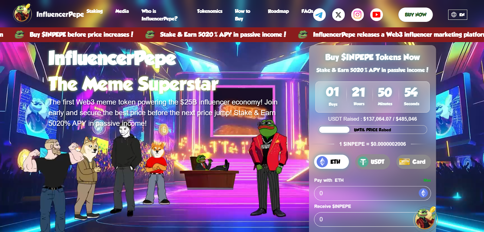 Influenciador pepe (inpepe) está ganhando tração como o Memecoin da próxima geração, posicionado de maneira única na interseção do Web3 e no crescente economia de influenciadores de US $ 25+ bilhões. Diferentemente dos tokens de meme tradicionais, o INPEPE pretende ser a moeda oficial para pagamentos de influenciadores, oferecendo: