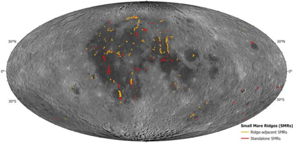 Os cientistas já sabem que as pequenas cristas dos mares lunares (ou SMRs, na sigla em inglês), vêm das mesmas forças que originaram as escarpas — com a diferença de que estas são encontradas nas planícies, enquanto as SMRs ocorrem somente nos mares. Para investigar o que estava por trás da diferença, os pesquisadores se debruçaram sobre catálogos das SMRs e descobriram 1.114 novos segmentos delas nos mares no lado da Lua voltado para a Terra