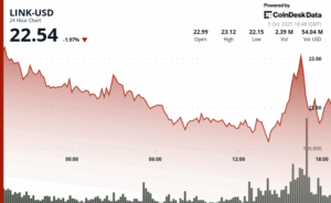 Os indicadores técnicos sinalizam o momento de alta, está retornando para o Link, estabelecendo uma baixa baixa resistência, mas enfrentando resistência no nível de US $ 23, sugeriu o modelo de pesquisa da Coindesk Data.
