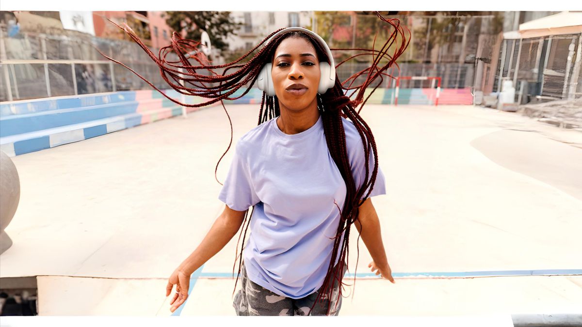 A conectividade também evoluiu: o fone usa Bluetooth 6.0, trazendo mais estabilidade no pareamento. Há botões físicos para controle de volume e faixas, além de microfone embutido para chamadas e reuniões.