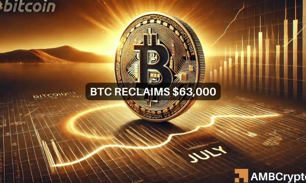 Bitcoin [BTC] negociado promissoramente acima de US$ 63.000 saindo do fim de semana, enquanto os touros tentavam ganhar terreno antes do fechamento mensal.