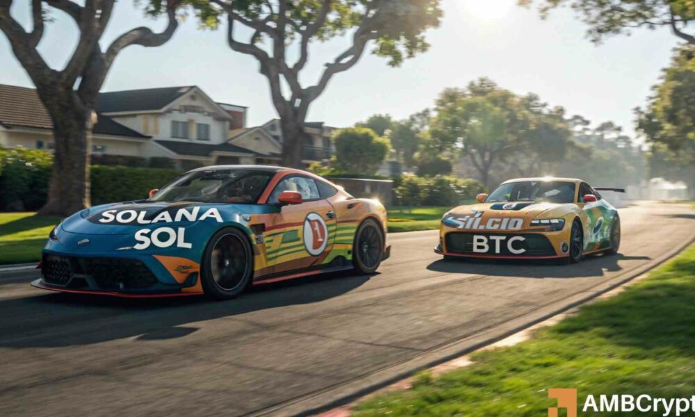 Atualmente, o BTC domina o mercado com 61%, seguido por Ethereum [ETH] em 8%, enquanto Sol é o quinto em 2,4% após ser invertido por Moeda de binance [BNB] recentemente.