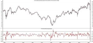 Um indicador confiável das condições de sobrevenda no mercado de títulos é medir o preço atual do Dow Jones Corporate Bond Average versus sua média móvel de 40 semanas. No gráfico a seguir, os preços atuais dos títulos estão em um spread significativo em relação à média móvel. Na verdade, houve apenas três outras vezes em que os títulos foram supervendidos: 1932, 1980 e 2008.