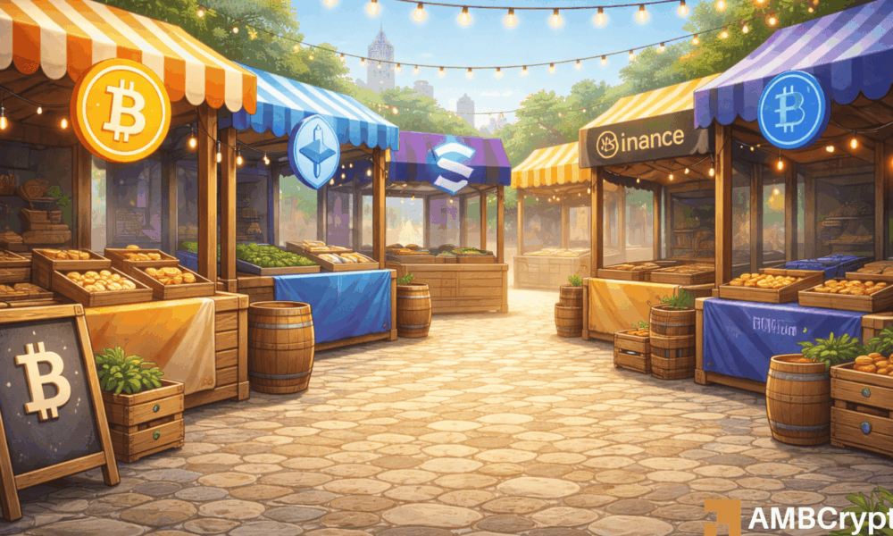 Solana [SOL] também caiu, caindo 3,64% na semana, sendo negociado perto de US$ 84,70enquanto BNB caiu 3,86% para aproximadamente US$ 617. A fraqueza dos ativos de beta alto reflete uma redução mais ampla no apetite ao risco, em vez de eventos isolados específicos de tokens.