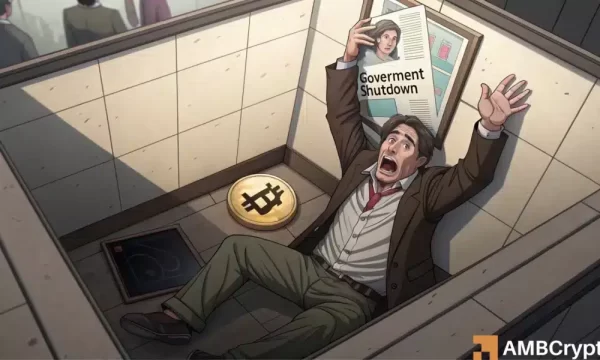 Pelo contrário, o aperto da liquidez em torno do Bitcoin, juntamente com os crescentes receios de encerramento, assemelha-se ao tipo de configuração que forma topos locais ou cíclicos, onde a pressão de compra não é forte o suficiente para absorver o FUD.