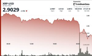 • O XRP caiu 3,46% durante o período de 24 horas, entrando em colapso de US $ 3,01 para US $ 2,91 antes de fechar em US $ 2,92.