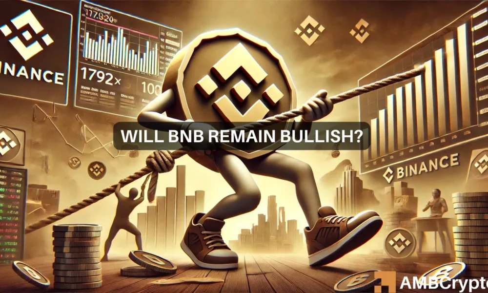 Apesar da perspectiva otimista após a recente queda, o Open Interest (OI) do BNB aumentou 1,4%, sinalizando leve interesse de traders e investidores.