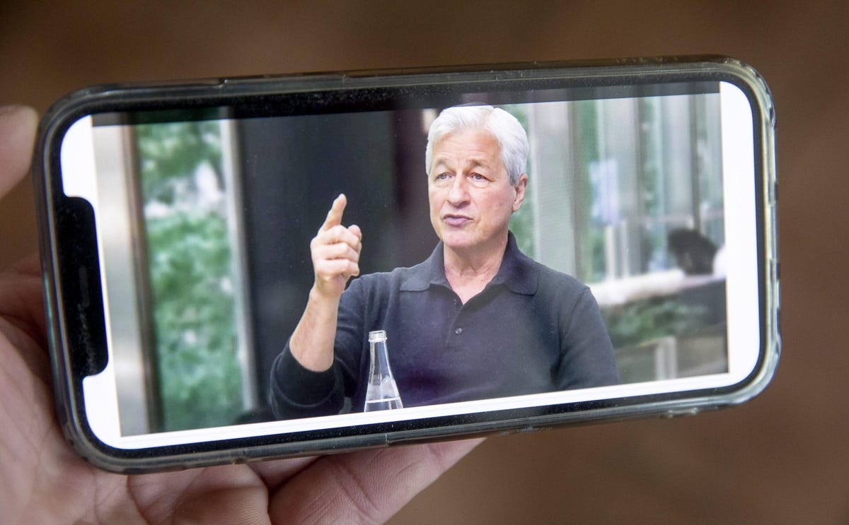 Jamie Dimon, diretor executivo do JPMorgan Chase & Co., fala virtualmente durante um webcast … [+]