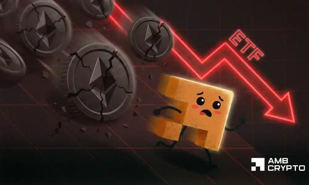 “Ainda assim, a grande maioria dos compradores permaneceu onde estava. Os influxos líquidos para os ETFs ETH passaram de cerca de US$ 15 bilhões para menos de US$ 12 bilhões.”