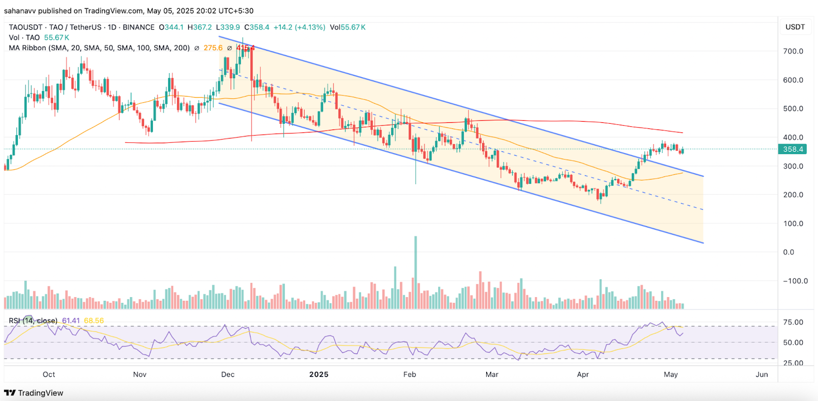 O preço da Bittensor saltou mais de 65% no mês passado e está sendo negociado em torno de US $ 358. O aumento ocorre à medida que os juros crescem na IA descentralizada, especificamente após as novas atualizações tornaram o desenvolvimento mais fácil e abriram novas maneiras de ganhar na rede. Além disso, a recente listagem da Coinbase também ajudou a aumentar a exposição de Tao, atraindo mais investidores e colocando -a como um dos principais projetos de blockchain de IA para assistir nesta temporada.