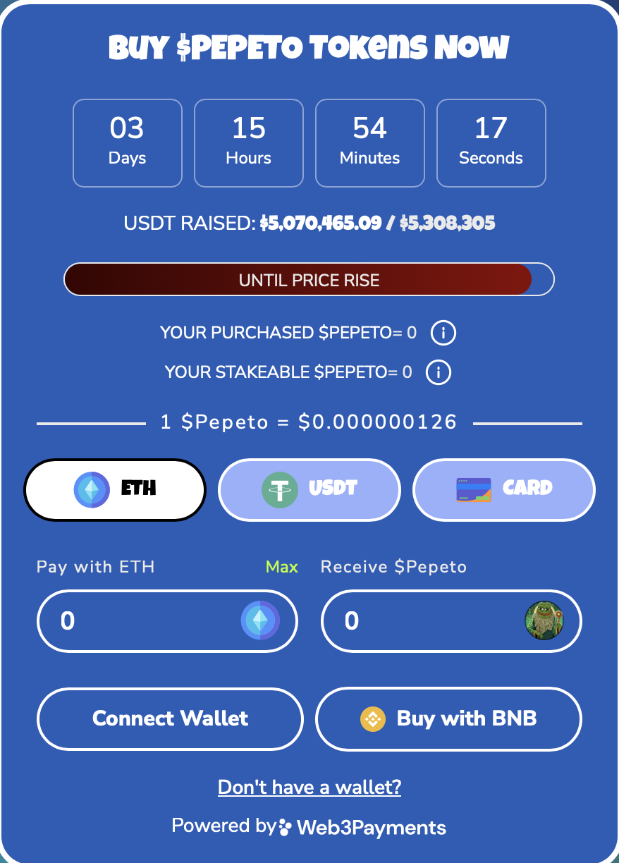 O site oficial https://pepeto.io