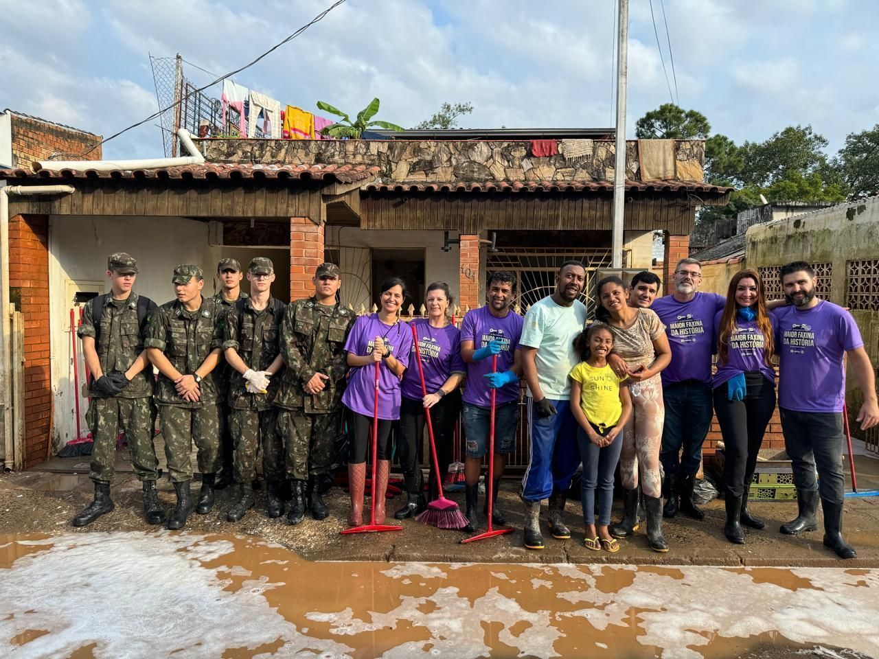 A iniciativa, promovida pela empresa Ypê, com apoio do Instituto Vakinha e do Grêmio, mobilizou pelo menos dois mil voluntários para ajudar na limpeza das casas afetadas pela recente enchente na região.
