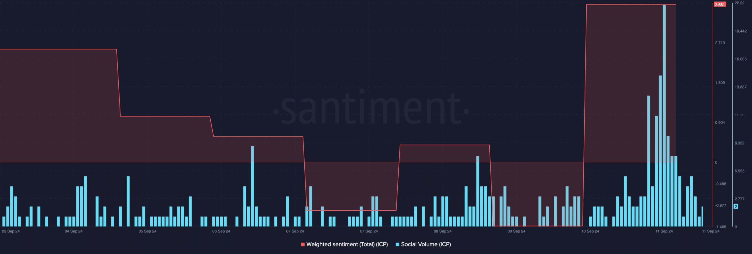Por exemplo, a análise da AMBCrypto dos dados da Santiment revelou um pico no sentimento ponderado da Internet Computer. Isso significou que o sentimento otimista em torno do token aumentou.