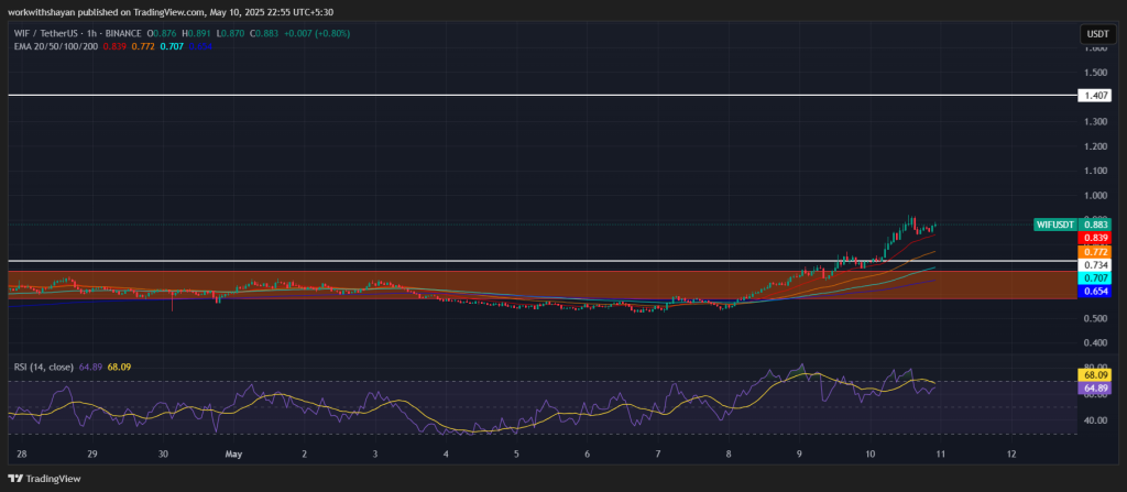 Os compradores conseguiram manter o preço da WIF acima dos níveis de suporte imediatos, pois o preço continua a manter seu momento acima de US $ 0,8. Até o escrito, os comerciantes de preços da WIF em US $ 0,8632, aumentando mais de 19% nas últimas 24 horas.