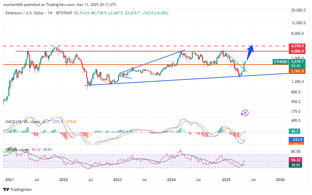 Do ponto de vista da análise técnica, Preço do éter está bem posicionado para testar novamente sua alta de todos os tempos em um futuro próximo. No prazo semanal, a linha MACD cruzou a linha de sinal pela primeira vez YTD. Mais importante ainda, o Ether Price recuperou o nível de suporte macro acima de US $ 2.360 após uma correção notável no primeiro trimestre.