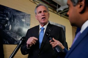 O presidente da Câmara, Kevin McCarthy, da Califórnia, fala com membros da imprensa antes de comparecer a uma sessão da Câmara … [+]