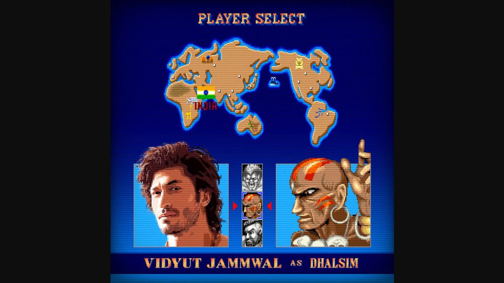 O ator indiano Vidyut Jammwal (Força Letal) foi o escolhido para interpretar o Dhalsim, o icônico mestre de ioga e monge guerreiro dos games. A característica mais marcante do personagem é o uso de seus membros extensíveis e o poder do fogo para manter distância dos oponentes.