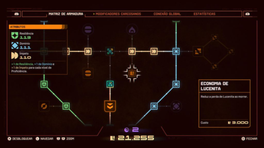 Outro ponto negativo é que senti muita dificuldade em progredir na árvore de habilidades do título. Alguns upgrades exigem uma quantidade enorme de lucenita ou serenidade, demandando um pouco mais de grind, o que, convenhamos, não é o objetivo central do jogo.