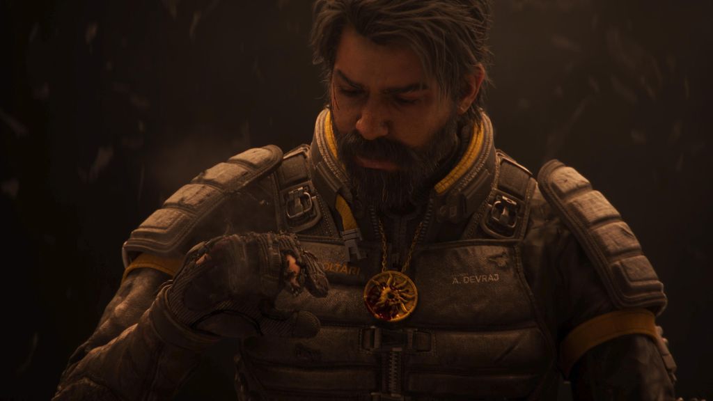 Saros apresenta cutscenes muito bem-feitas, verdadeiras obras de arte com modelos de personagens muito bons. Infelizmente, isso muda quando estamos interagindo com os companheiros de Arjun in-game. Os modelos faciais são sem vida e até robóticos, contrastando negativamente com os belos cenários.