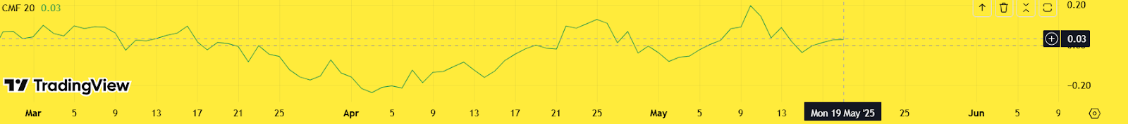 O RSI caiu para 52,4, abaixo de 59,7 durante o pico recente, sinalizando a força de alta. Enquanto isso, o Flow Chaikin Money (CMF) ficou negativo em -0,06, caindo de +0,18 -um sinal claro de que falta de entradas de capital seco e falta de interesse de acumulação.