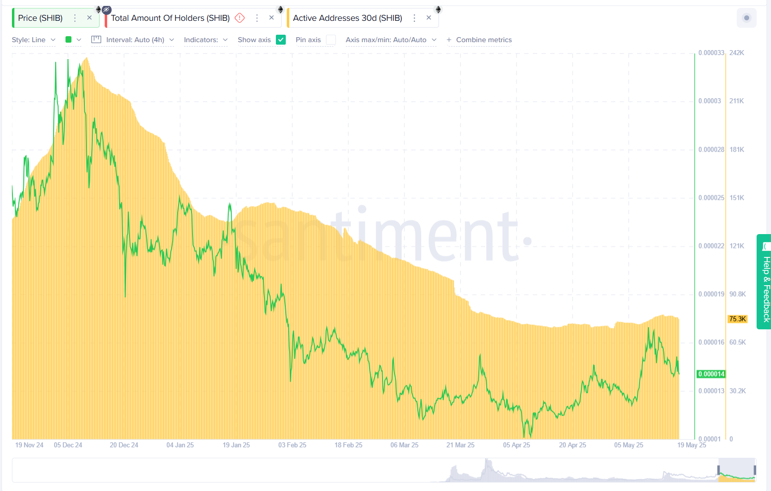 No entanto, a manifestação de preços não teve seu impulso. Em 17 de maio, o rastreador de Shibburn observou um pico incrível de 106.040% em sua taxa de queimadura de 24 horas, mas Shib caiu para -5,3% no mesmo dia, produzindo uma configuração de baixa confirmação mais baixa.