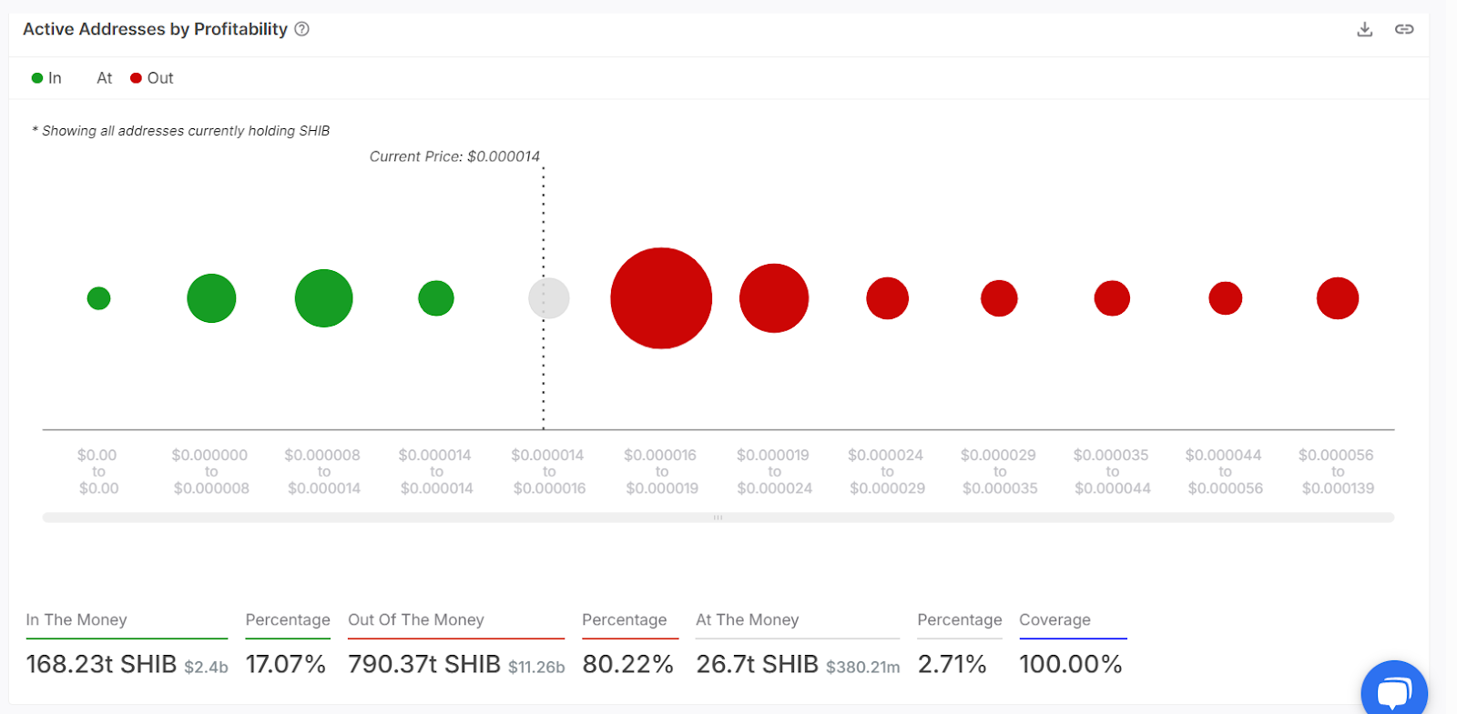 Atualmente, apenas 17% dos detentores de shib estão lucrando, enquanto mais de 80% estão com prejuízo. Isso significa que, se o preço subir, muitos comerciantes podem vender rapidamente apenas para recuperar seu dinheiro, o que poderia impedir que o comício continuasse.