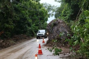 - Km 087 – queda de barreira e árvores (Praia da Cocanha); faixa reversível sentido leste;