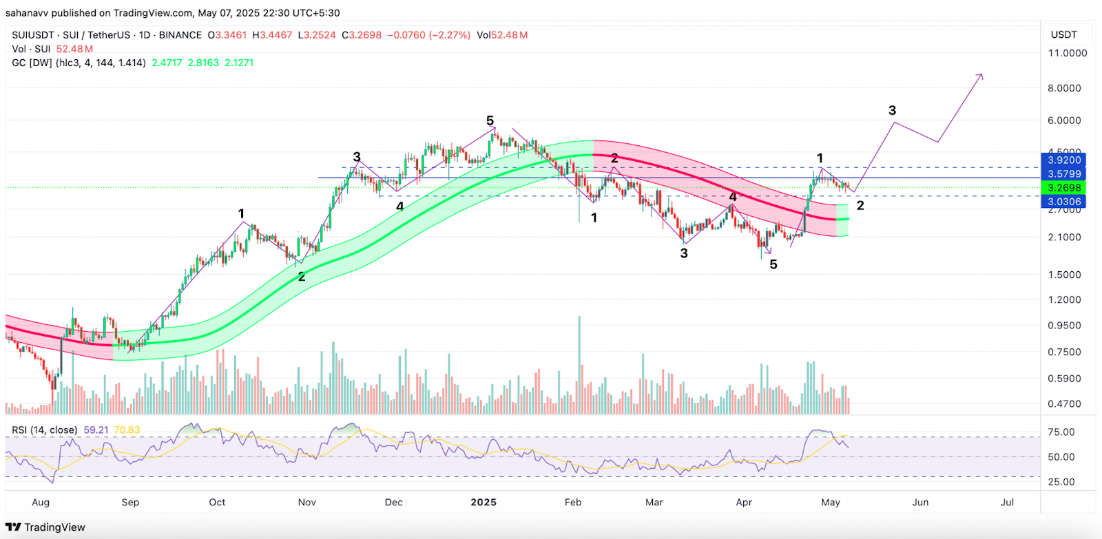 Portanto, considerando que o preço da SUI continuará com a nova onda Elliot, ele poderá formar um novo ATH em torno de US $ 9 a US $ 9,2 na segunda metade de 2025.