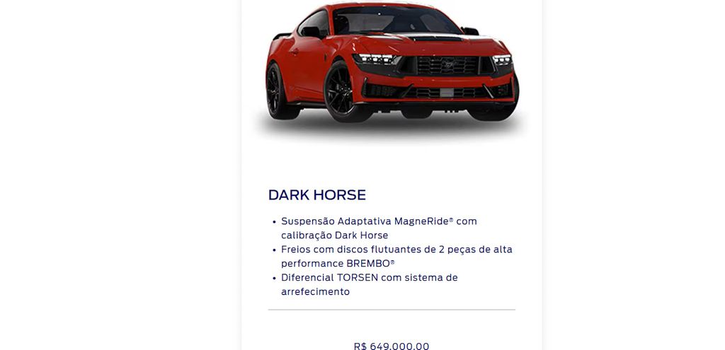 Preço do Dark Horse no Brasil é, à primeira vista, bem mais caro do que nos Estados Unidos (Imagem: Divulgação/Ford)