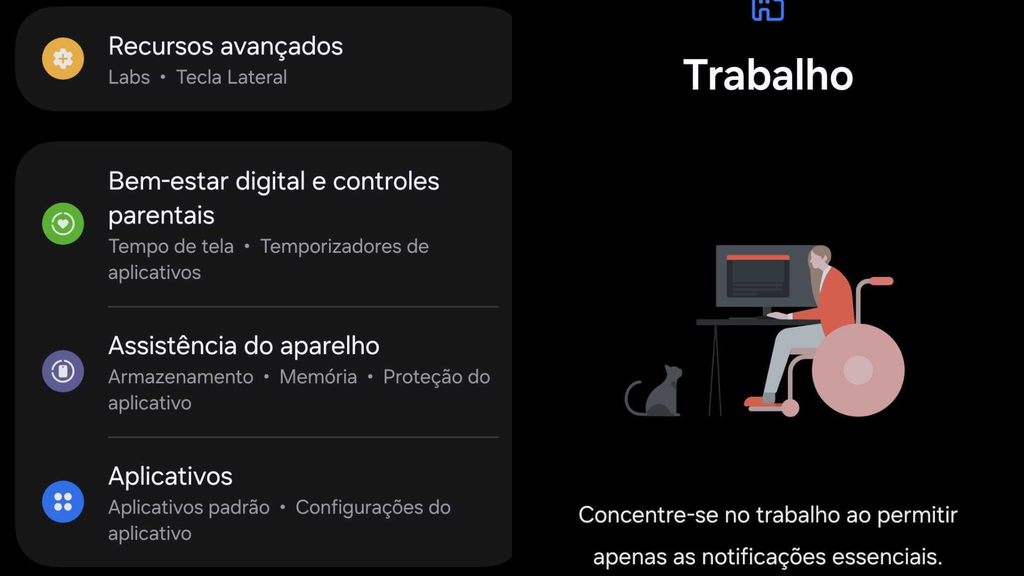 O Bem-estar Digital mostra quanto tempo você passa em cada aplicativo, ajudando a tomar consciência do seu uso real. Muitas vezes, só de ver os números, já surge a motivação para mudar hábitos. Ao ir em Configurações > Bem-estar digital e controles parentais, você consegue visualizar o painel de uso diário.