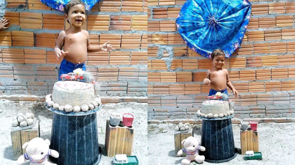 Vídeo: Criança de 2 anos comemora aniversário com bolo de areia e comove no interior do Piauí