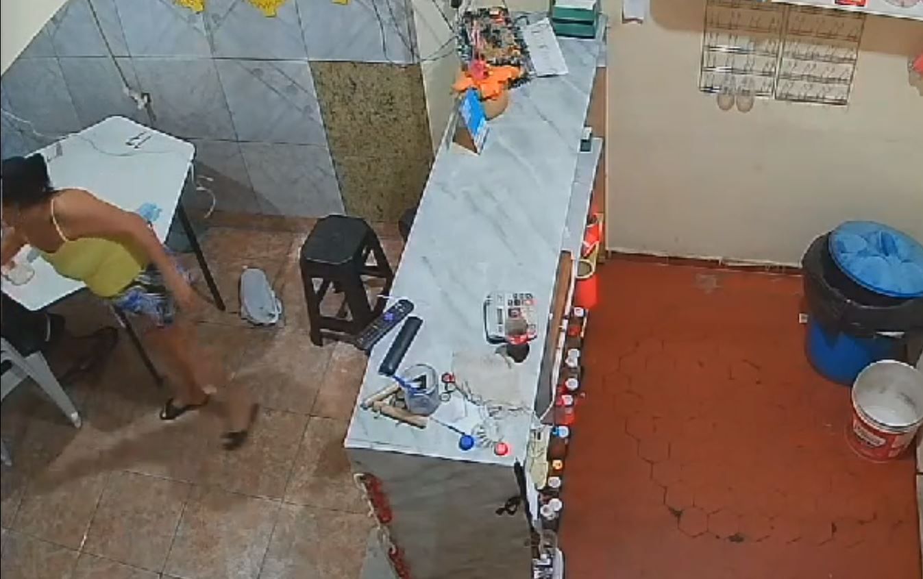 Imagens de câmeras de monitoramento do estabelecimento comercial mostram quando Ana Maria Paixão vai até o companheiro, que estava sentada no canto do vídeo, joga um líquido que seria inflamável, acendeu um isqueiro e incendiou o corpo do homem.