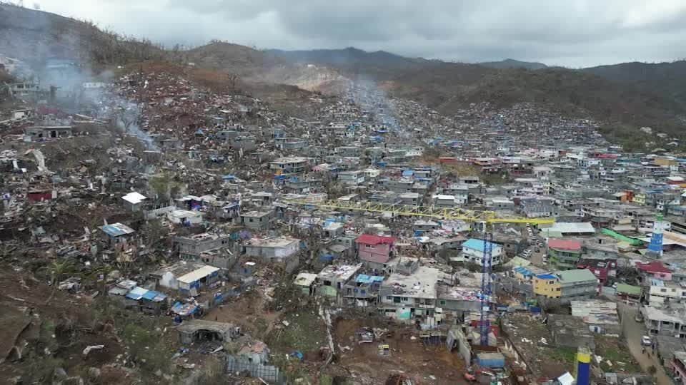 Imagens de drone mostraram o tamanho dos danos e destruição em áreas residenciais em Kaweni nesta quarta-feira (18), quatro dias após o ciclone Chido ter atingido o território francês de Mayotte.