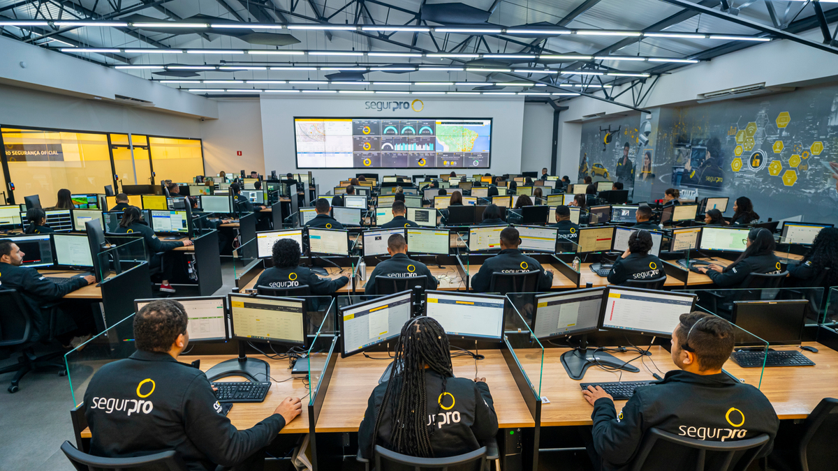 O ambiente é organizado e mais silencioso do que se espera, focado no que a empresa chama de “Segurança Híbrida”: um conceito que tenta unir a vigilância física tradicional com análise massiva de dados.